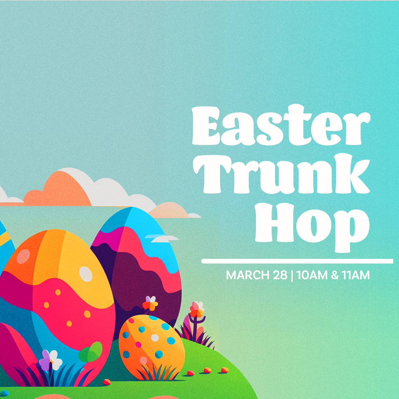Join us for a fun, family-friendly Easter Trunk Hop featuring 4,000 Easter eggs, bounce houses, amusement rides, face painting, food, and more! We will begin at 10AM with a Sensory-Friendly Hour followed by our Traditional Trunk Hop at 11AM.